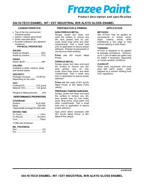544 Hi Tech Enamel Int Ext Industrial W R Frazee Paint